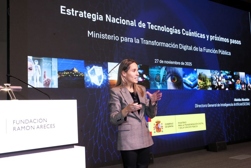 La primera jornada contó con intervenciones destacadas, entre ellas las de Eva Ortega, secretaria general de Investigación del Ministerio de Ciencia, Innovación y Universidades; Óscar Díez, subdirector de la Unidad de Tecnologías Cuánticas de la Comisión Europea; y Aleida Alcaide García, directora general de Inteligencia Artificial de la Secretaría de Estado de Digitalización e Inteligencia Artificial.
